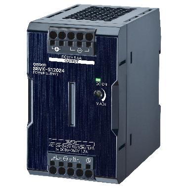 Alimentatore S8VK-S monofase 120W, ingresso 100…240Vc.a., uscita 24Vc.c. / 5A, classe B, modello protetto, montaggio guida DIN, Push-In Plus e tropic.